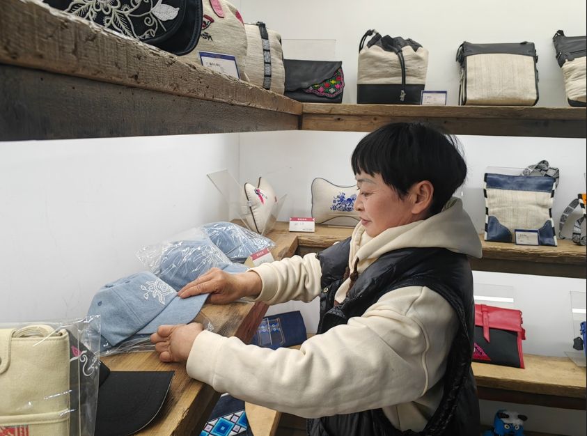 在华珍藏羌文化博物馆内,54岁的唐素华动作麻利地整理着桌上的羌绣手工艺品。若非刻意观察,可能很难注意到她是一位残疾人。唐素华跟随国家级非物质文化遗产传承人杨华珍学习羌绣已经有六七年。许多像她一样的残疾人或农村妇女通过学习羌绣增加了收入、改善了生活。现在,唐素华偶尔还承担起培训学生的任务,“目前学习羌绣的人很多,最小的七八岁,最大的有80多岁”。
