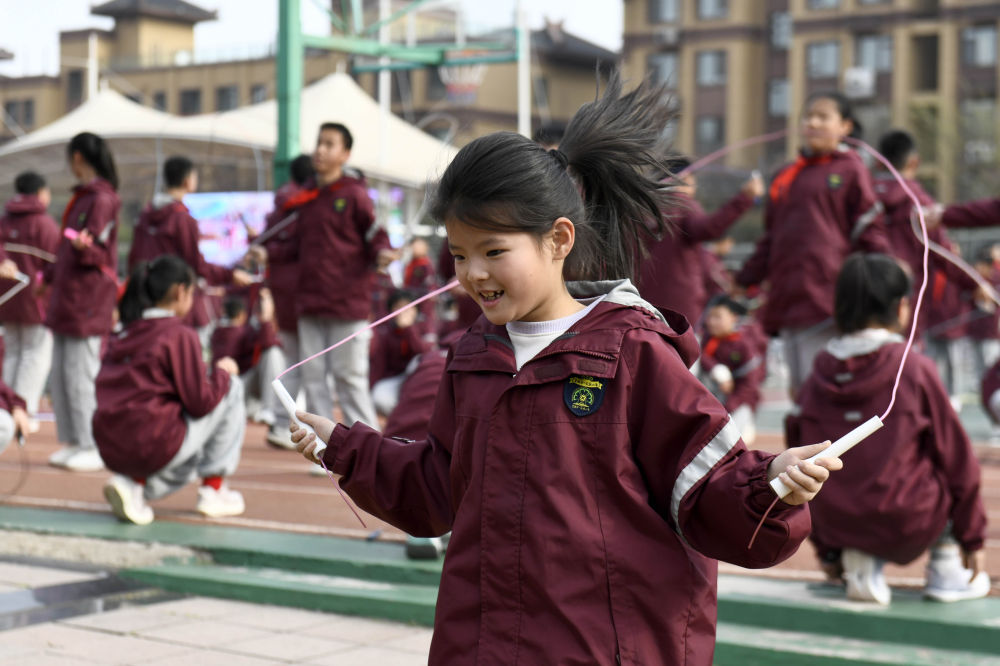 山东日照市小学生在进行阳光大课间活动 郭绪雷 摄