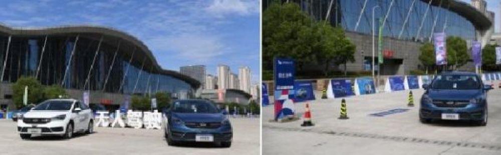 户外无人驾驶汽车体验区的奇瑞艾瑞泽5e自动驾驶汽车