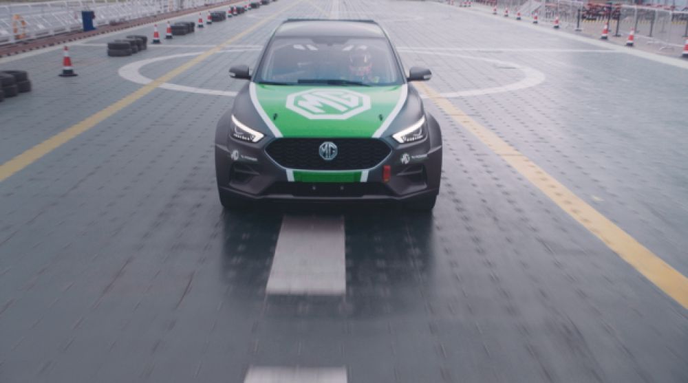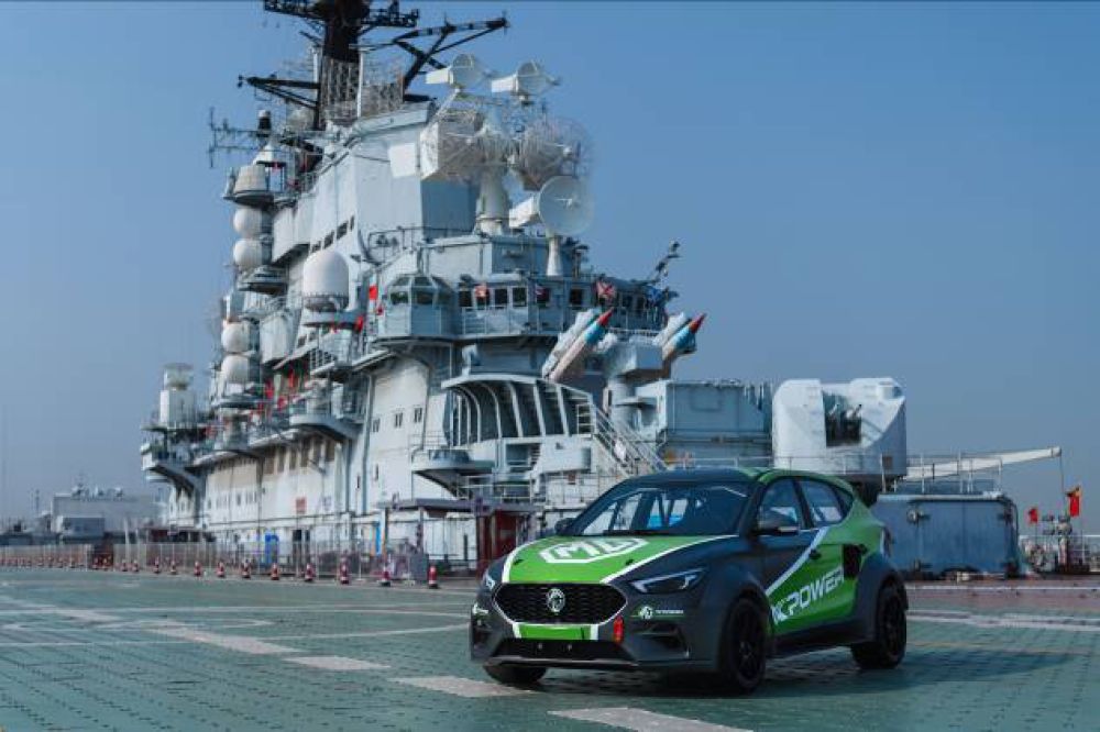 10月12日,MG XPOWER车队著名车手张臻东驾驶名爵ZS战车,在仅有195米的基辅号航母甲板上完成了全球首次0-100km/h加减速挑战。张臻东在88.6米距离内,驾驶名爵ZS从0km/h加速到100km/h, 用时仅3.6秒,随后又在33.1米的距离内将车辆刹停。整个过程一气呵成,名爵ZS驶过121.7米航母甲板,仅用时6.1秒!