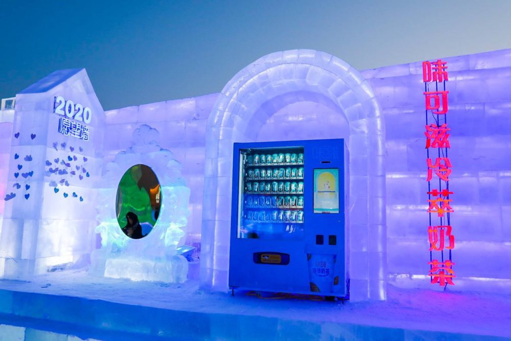 ↑在展区内,伊利味可滋售卖机经过改装后可在零下30℃的天气里每日为游客提供200份免费热饮,让游客在寒冷的冬季感受到暖暖的关怀。