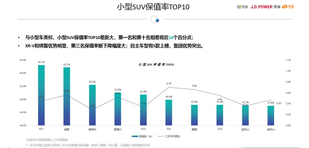 XR-V以三年保值率63.1%的优异成绩,位列小型SUV保值率第一。作为小型SUV市场的销量明星,XR-V对于榜单成绩也当之无愧。75万XR-V用户坚定不移的支持和信赖,75万张喜悦的笑脸,不仅助力东风Honda 500万+庞大用户基盘的成功构建,而且东风Honda“更科技、更时尚、更自如”的全新品牌形象也随之逐渐锐化、不断升温,成为XR-V乃至东风Honda吸引更多消费者背后的力量。