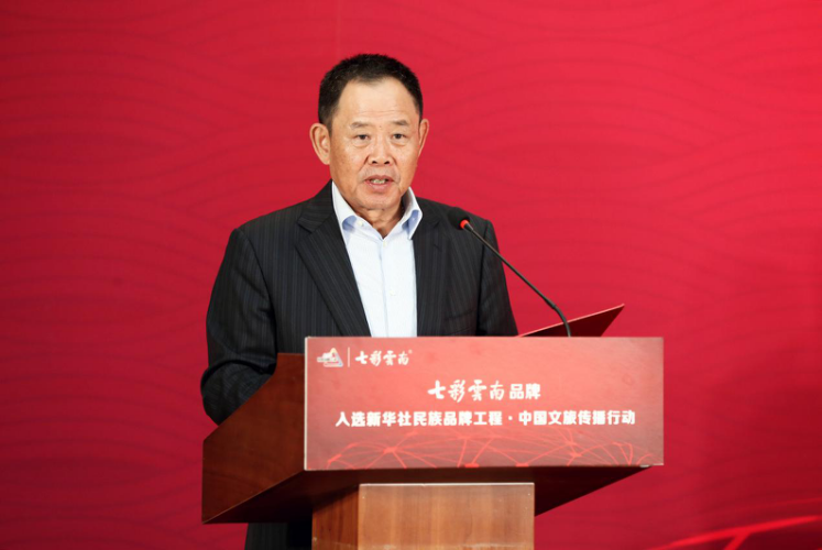 ↑“七彩云南”品牌创始人、七彩云南古滇名城董事长任怀灿致辞