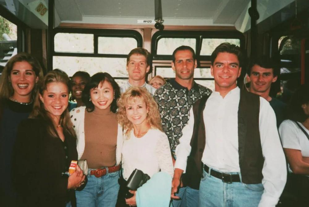 1995年9月,陈露在美国同世界优秀花样滑冰运动员在一起。新华社发