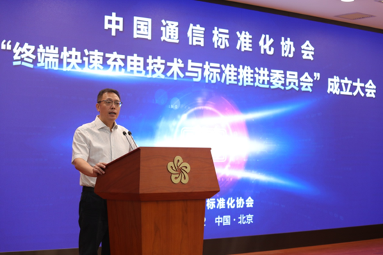7月22日,中国通信标准化协会(CCSA)举行“终端快速充电技术与标准推进委员会(TC626)”成立大会。工信部信息通信管理局一级巡视员王鹏,中国通信标准化协会理事长闻库,电信终端产业协会秘书长、中国通信标准化协会TC626主席谢毅出席会议并致辞。