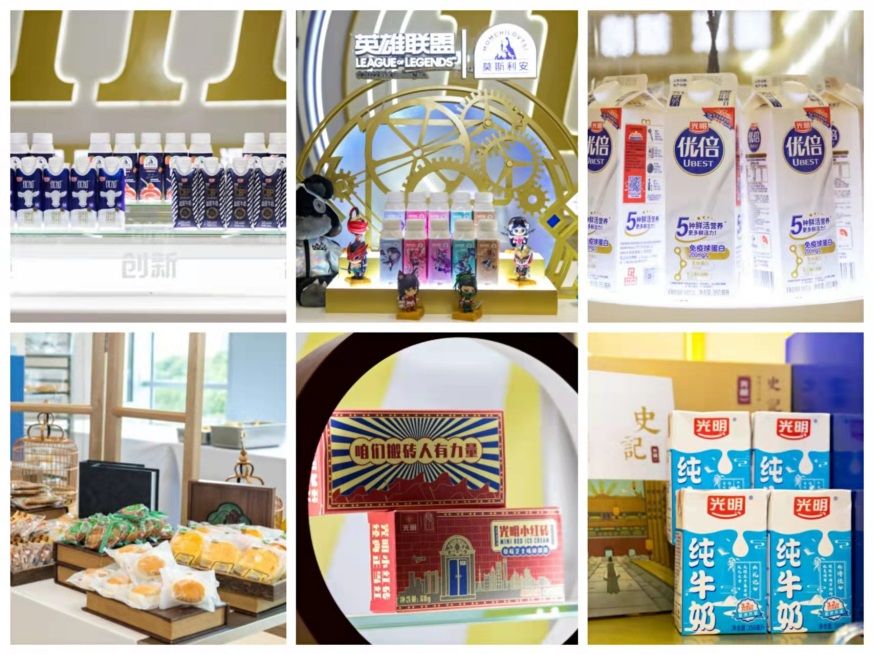 展台上,高品质的光明产品吸引了中外记者的目光:光明一只椰子饮品、光明巧克努力饮品、光明荔志桃桃饮品等口感层次丰富的饮品类乳品,让中外记者赞不绝口。光明莫斯利安酸奶、光明优加纯奶等经典产品,充分发挥奶味浓郁、营养丰富的特点,为中外记者提供满满能量。光明如实高蛋白无添加酸奶、光明如实优酪乳,则以纯净无添加、0蔗糖、低热量的健康配方,获得中外记者的青睐。除了奶制品外,光明乳业旗下牛奶棚的各款精美糕点也让中外记者大饱口福。今年,牛奶棚还推出了特别款无糖糕点,从健康饮食理念出发,满足多样化需求。此外,光明乳业通过挖掘红色底蕴研发的“小红砖”、“新青年”等系列红色文创产品,以及与《典籍里的中国》等联名推出的限定周边产品、联名英雄联盟推出的莫斯利安星之守护者系列酸奶等,向中外记者展示独具特色的光明形象。