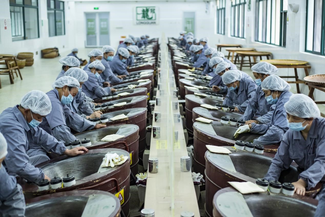 在中茶龙冠公司,传承已久的龙井茶炒制工艺被创造性地总结为“十大手法”,制茶过程按照现代工业品的生产方式,被拆解为可量化的26道工序,12道品控程序。