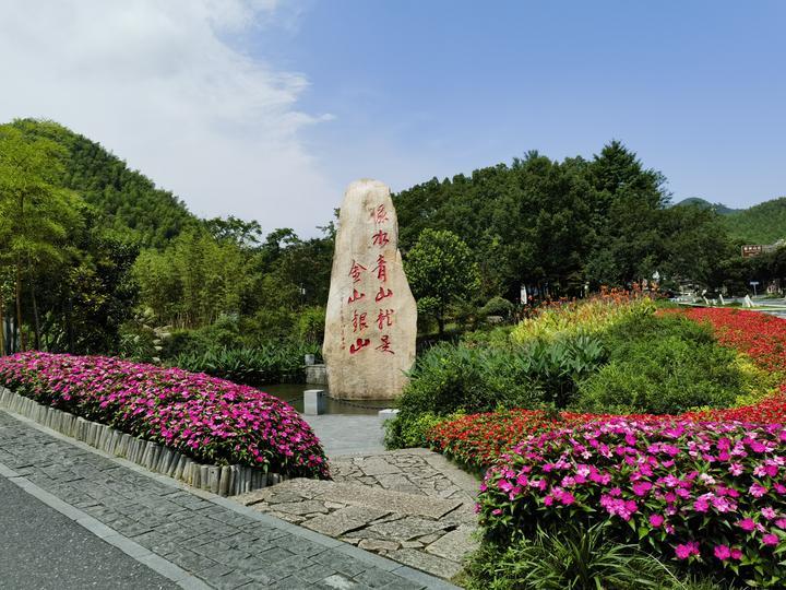 在余村村口,青翠掩映处,流水小桥旁,“绿水青山就是金山银山”几个大字被镌刻在一块岩石上。这句话,激励着余村坚定不移地走上了生态立村之路。