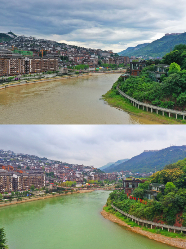 不同季节赤水河从浑浊到清澈的变化对比。