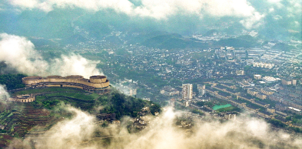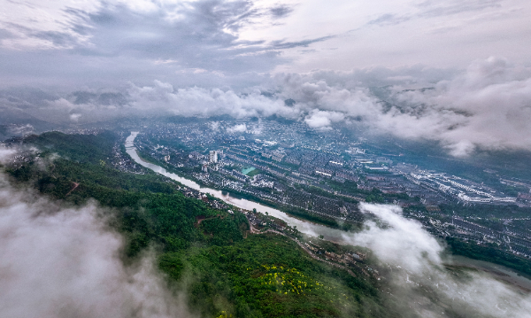 云雾中的茅台镇。