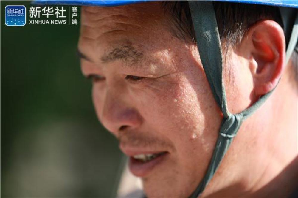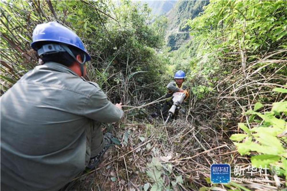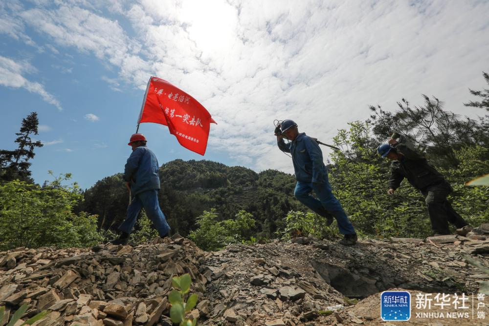 2020年4月24日,在贵州省铜仁市沿河土家族自治县新景镇龙山村,来自玉屏侗族自治县电力脱贫攻坚突击队在施工。胡攀学 摄
