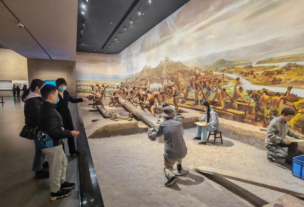 2023年3月4日,游客在位于杭州余杭的良渚博物院参观(新华社记者 徐昱 摄)