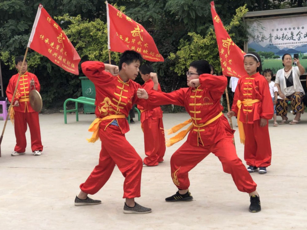 在临清市唐园镇瑶坡村新时代文明实践站,孩子们在练习被列入第三批国家级非物质文化遗产名录的“肘捶”,健身器械、篮球架、户外广场让老中青三代人都能找到适合自己的健身项目。